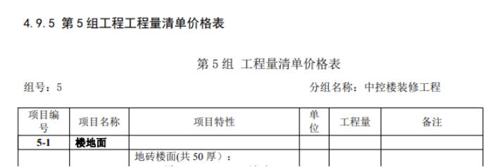 8.第五章 工程量清单/4.工程量清单/4.9 分部分项工程和单价措施项目清单与计价表/4.9.5 第5组工程量清单价格表中,“工程量”一列后是否增加单价、合价列?